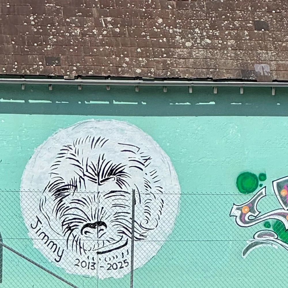 This memorial to Jimmy is on the wall next to the old Caltex petrol station. You can see it as you’re heading down towards the beach on Bondi Road just after passing Waverley Park. Not sure how they got in there to do it as it’s behind a tall metal mesh fence.